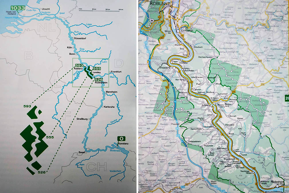 The Upper Middle Rhine Valley is the place most tourists want to see, but the Rhine is of course much longer than the little snippet you see in dark green at the link. Where are you headed?