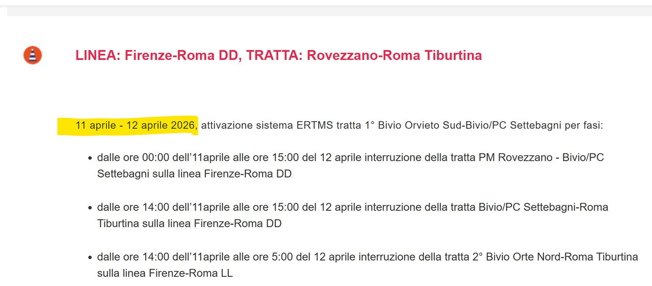 It's the bridge, RFI has recently updated the timetable of the planned works: https://i.postimg.cc/wjWtMtYd/Immagine-2026-04-14-205937.jpg Based on what happened in the past they'll open the bookings around June 14.