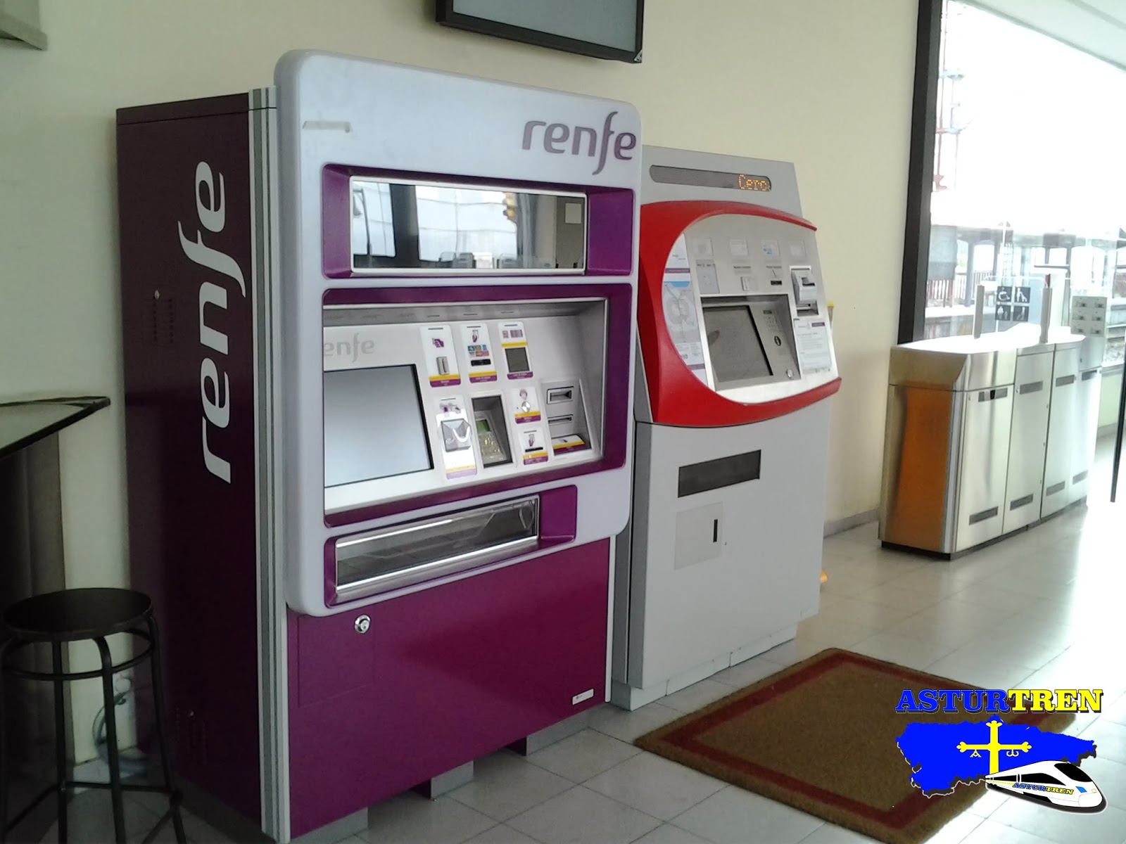 For info: long distance/AVE ATM. Not all stations have these ATMs but that's pretty much common for long distance/fast trains -which, incidentally, stop in the major hubs only. Zoom in and note the different payment methods, which include also contactless cards and payments with your mobile (cellular phone!).